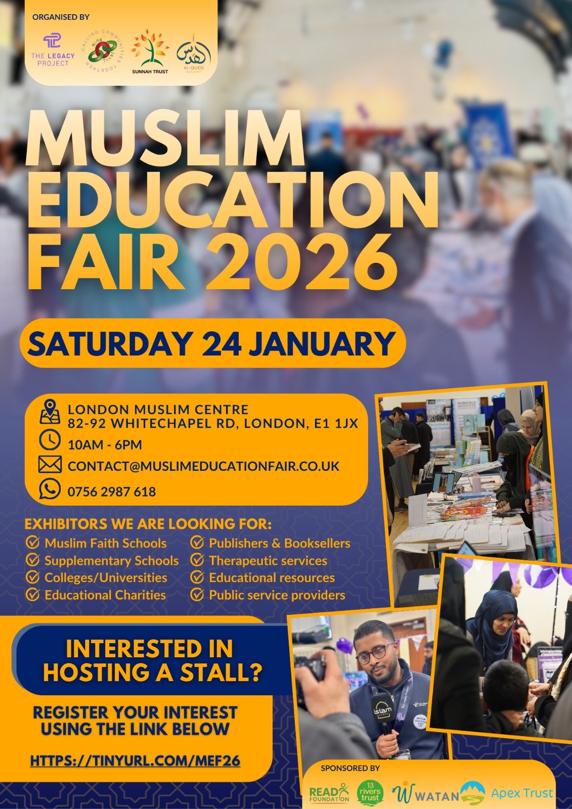The Muslim Education Fair 2026 brings together students, parents, educators, and community organisations to explore the very best of Muslim education in the UK. Featuring a wide range of exhibitors, the fair provides guidance on school choices, further education pathways, Islamic education, community learning, and support services.
